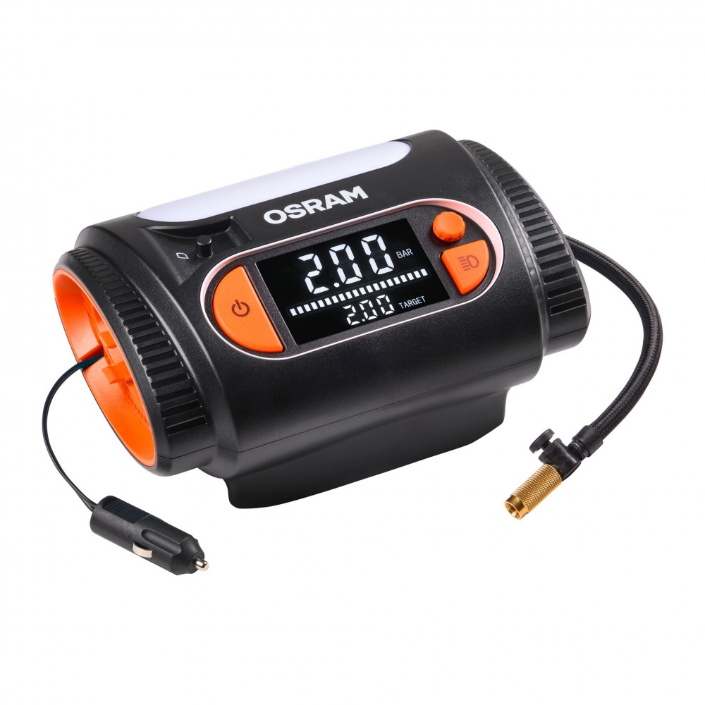 Ο OSRAM TYREinflate 2130 είναι το κορυφαίο μοντέλο της σειράς φορητών κομπρεσέρ OSRAM, σχεδιασμένο για ταχύτητα, ακρίβεια και ευκολία. Εξοπλισμένο με μεγάλη ψηφιακή οθόνη LCD με ένδειξη προόδου, προσφέρει καθαρή και άμεση ενημέρωση για την πίεση των ελαστικών.