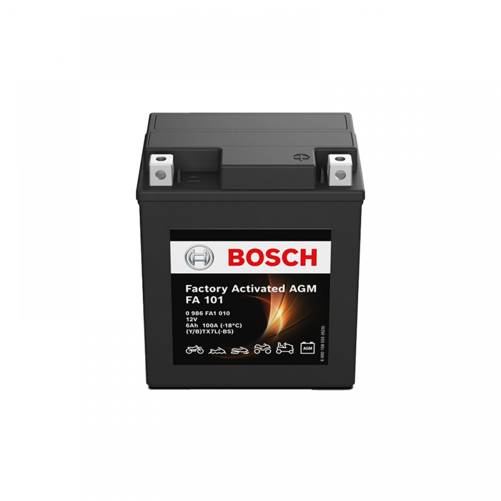 Η Bosch FA101 (0986FA1010) είναι μια AGM (Absorbent Glass Mat) μπαταρία μοτοσυκλέτας, σχεδιασμένη για υψηλή απόδοση και αντοχή. Αντικαθιστά την παλαιότερη υγρή μπαταρία Bosch 0092M60060 τύπου YTX7L-BS, προσφέροντας βελτιωμένη τεχνολογία και αξιοπιστία.