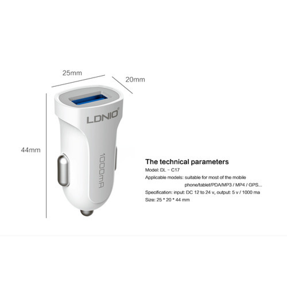 LDNIO φορτιστής αυτοκινήτου 1Α +δώρο καλώδιο φόρτισης Micro USB