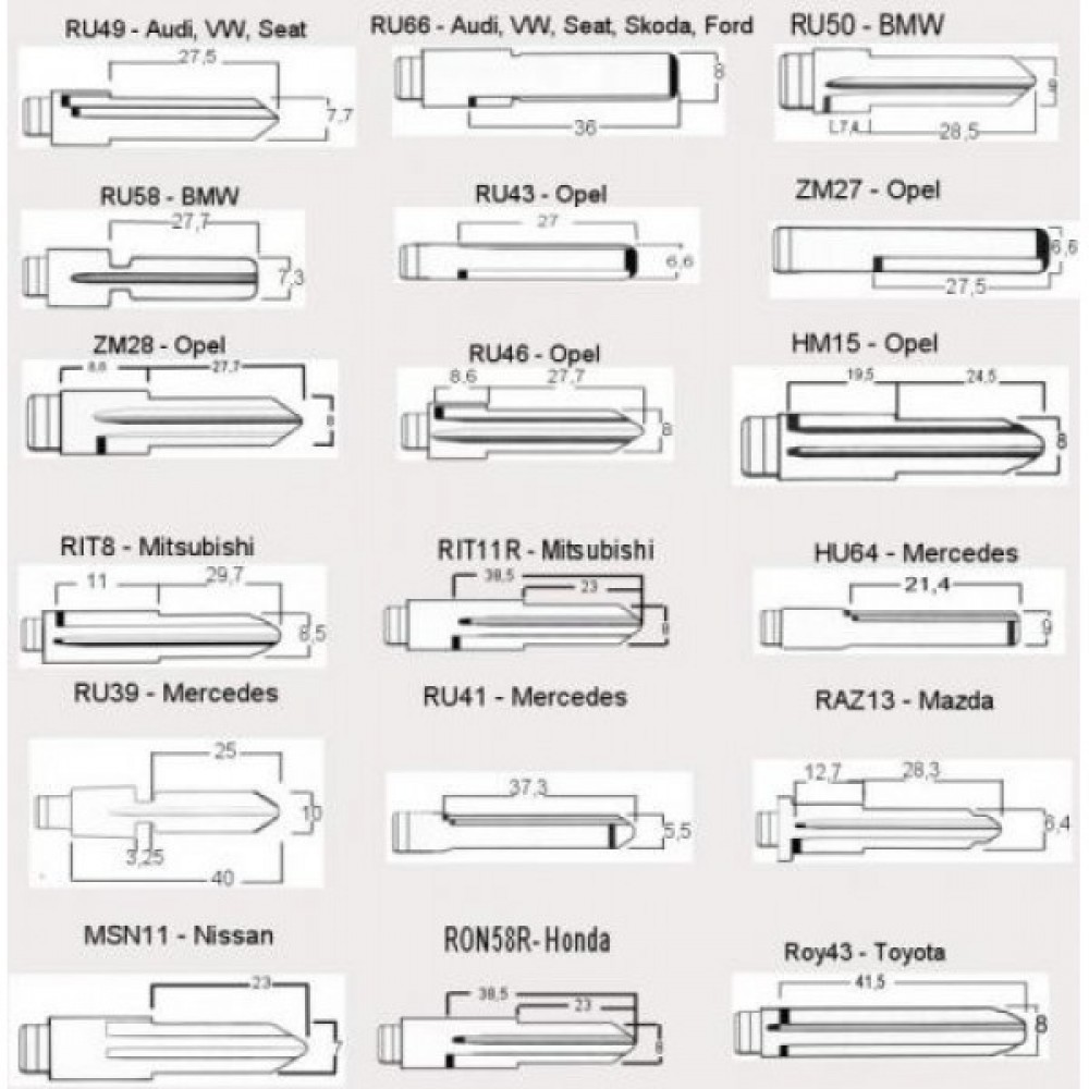 Ελέγξτε αν η άκοπη λεπίδα είναι ίδια με την λεπίδα του αυτοκινήτου σας σε διαφορετική περίπτωση δεν εφαρμόζει και δεν μπορεί να κοπεί από κλειδαρά για το αμάξι σας (Συμβουλευτείτε τον οδηγό φωτογραφία 2)