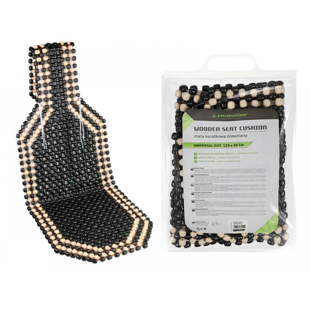 Κάλυμμα καθίσματος με ξύλινες χάντρες Carmotion 86240 128X39CM (μαυρο-λευκο)