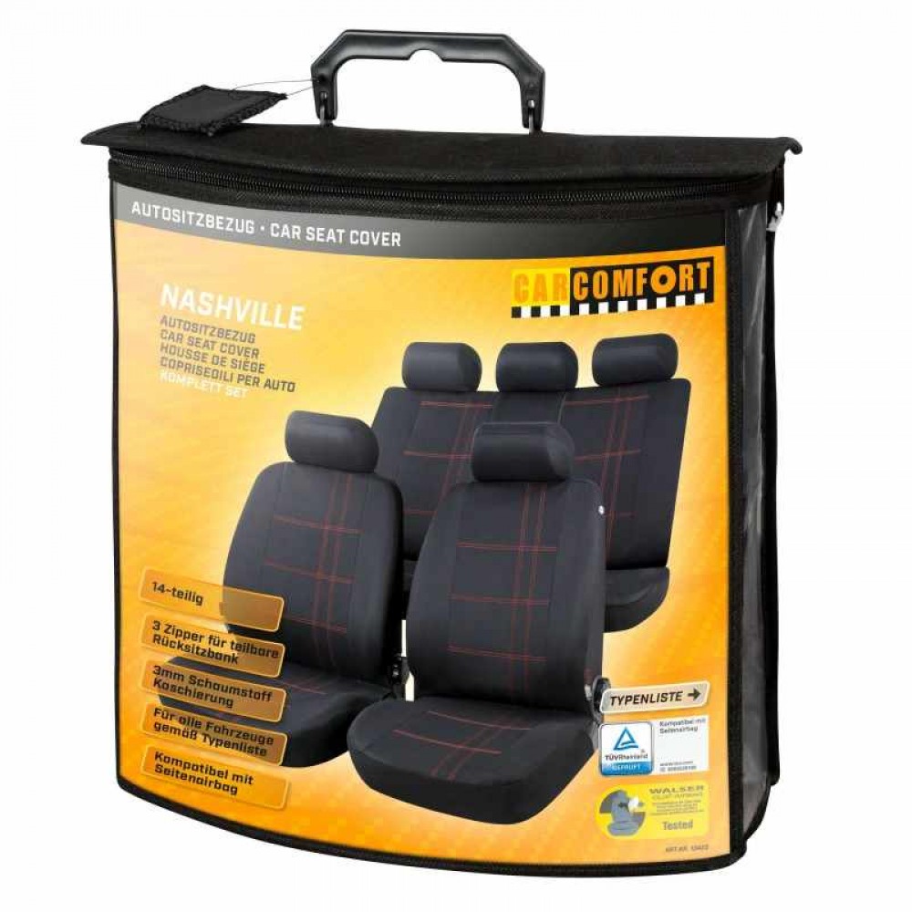 Σετ καλυμμα αυτοκινήτου μαυρο με κοκκινες ραφες Σετ (14 τεμαχίων) NASHVILLE 13425