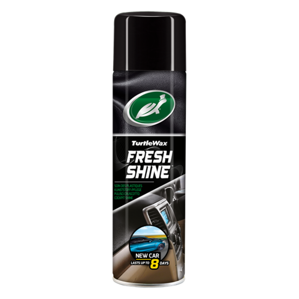 Γυαλιστικό για ταμπλό Fresh Shine New Car 500ml, TURTLE WAX. Το γυαλιστικό Fresh shine σε aerosol, περιέχει σιλικόνη η οποία εισχωρεί στην επιφάνεια του ταμπλό ώστε να το προστατεύει και να το γυαλίζει. Αφήνει ευχάριστο άρωμα που διαρκεί έως και 8 ημέρες.
