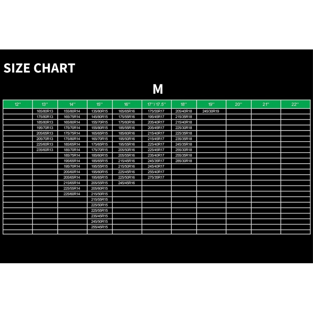 Η χιονοκουβέρτα Kaver Standard M ταιριάζει στα παρακάτω μεγέθη ελαστικών: