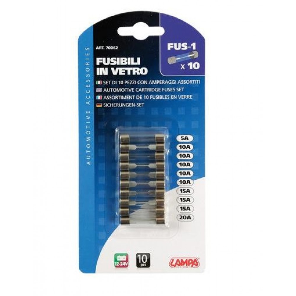 Ασφάλειες αυτοκινήτων γυαλινες 32mm καρτέλα 10 τεμαχίων FUS-1