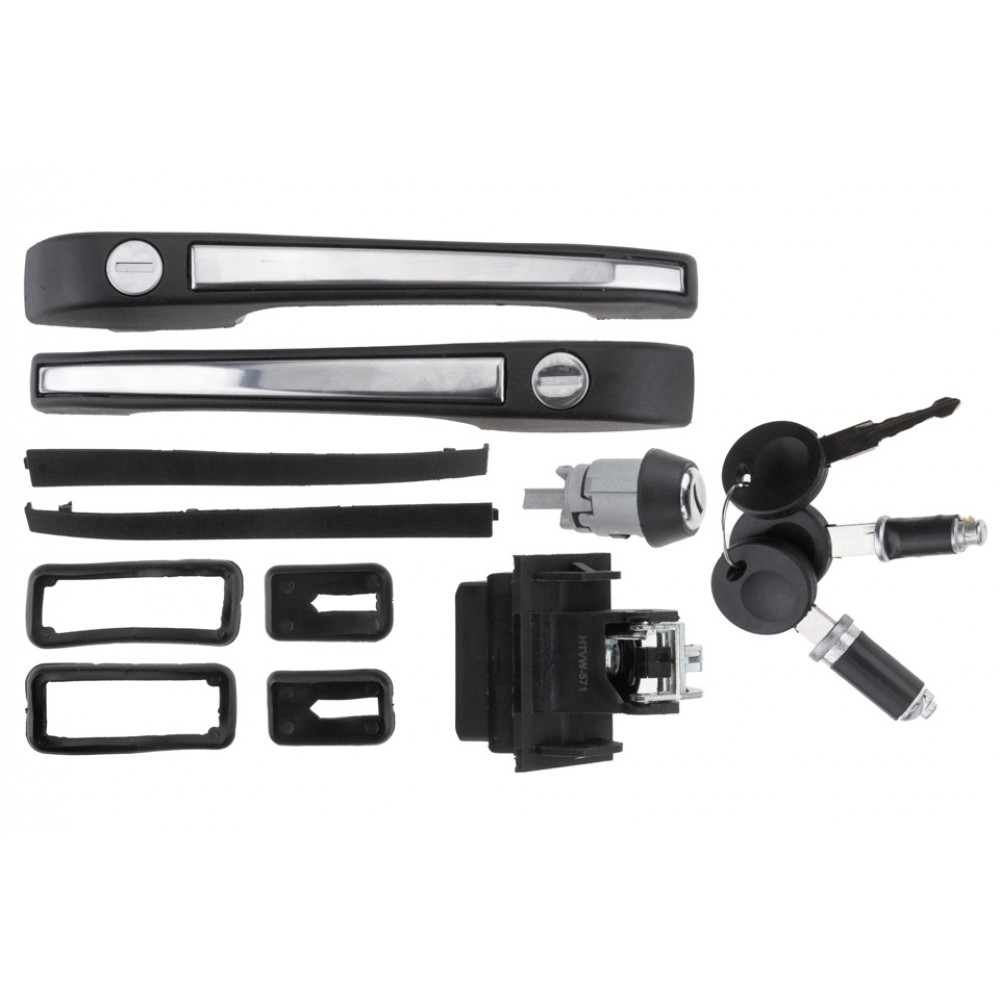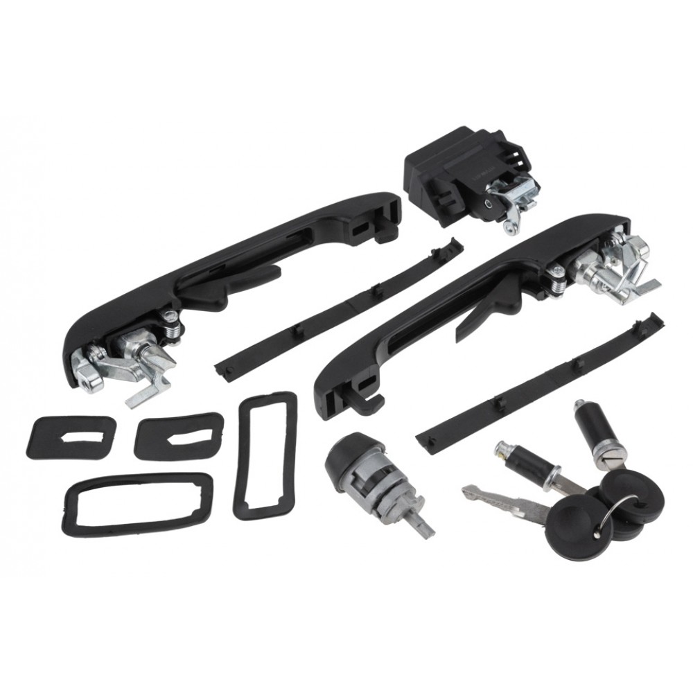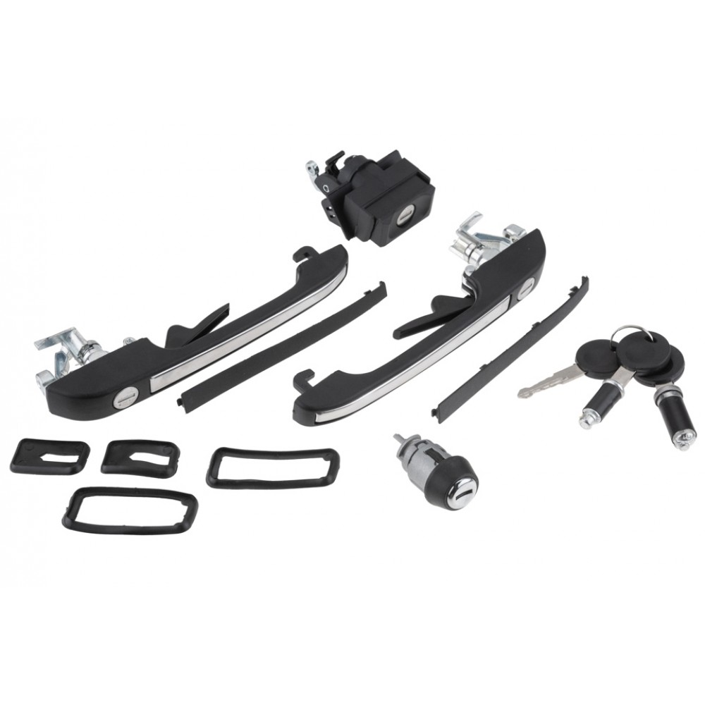 Πλήρες σετ χειρολαβών και κλειδαριών NTY EZC-VW-571, ειδικά σχεδιασμένο για VW Golf II (1983-1991). Το σετ περιλαμβάνει: