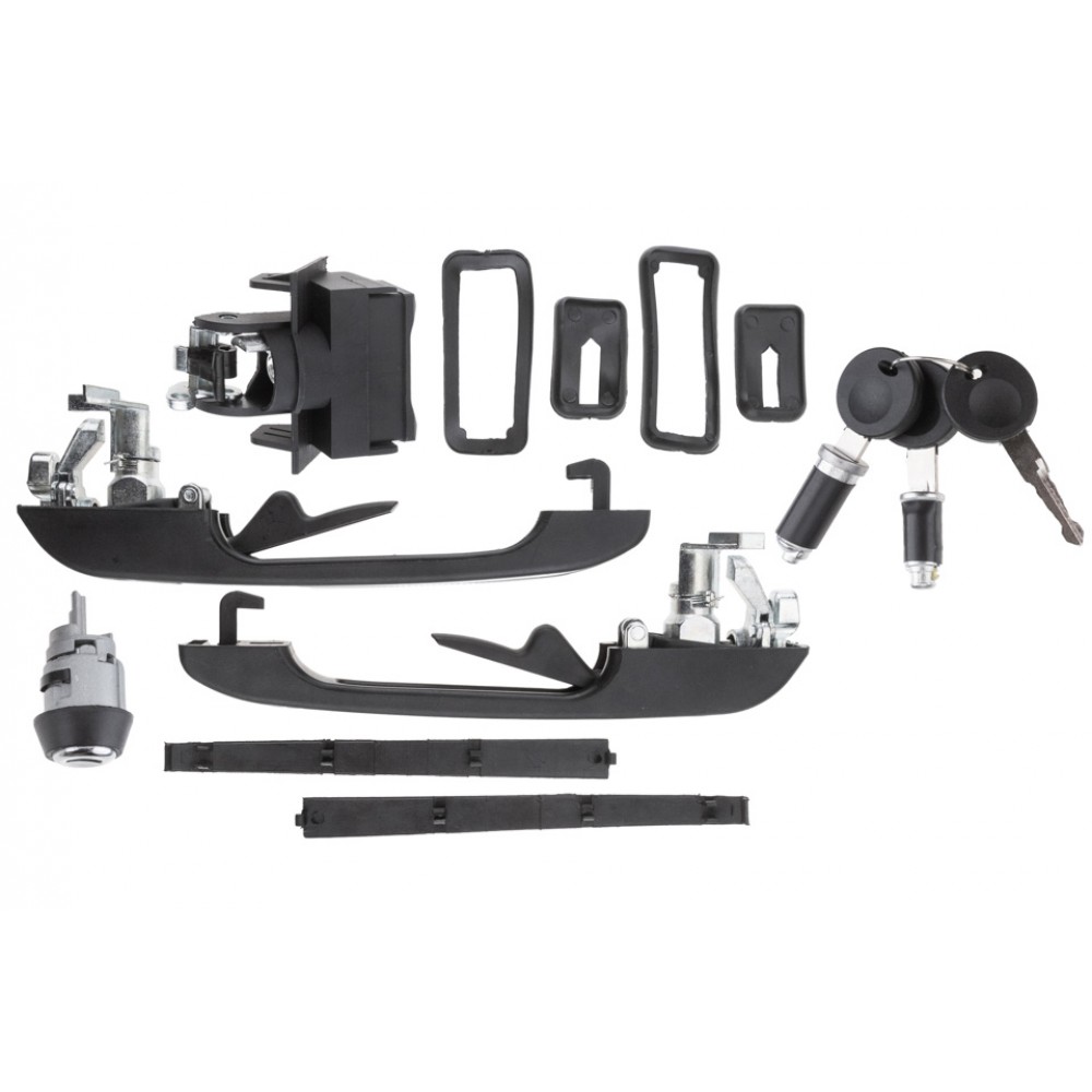 Αυτό το σετ εξασφαλίζει πλήρη αντικατάσταση και λειτουργικότητα για τις κλειδαριές και τις χειρολαβές του οχήματός σας. Ιδανικό για αποκατάσταση ή αναβάθμιση.