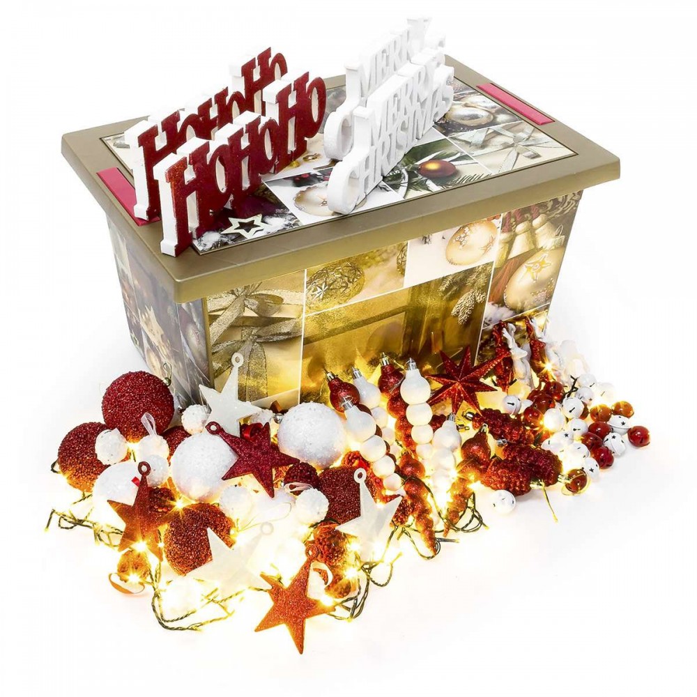 Πλήρες χριστουγεννιάτικο κουτί δώρου με λαμπερά στολίδια X-Mas