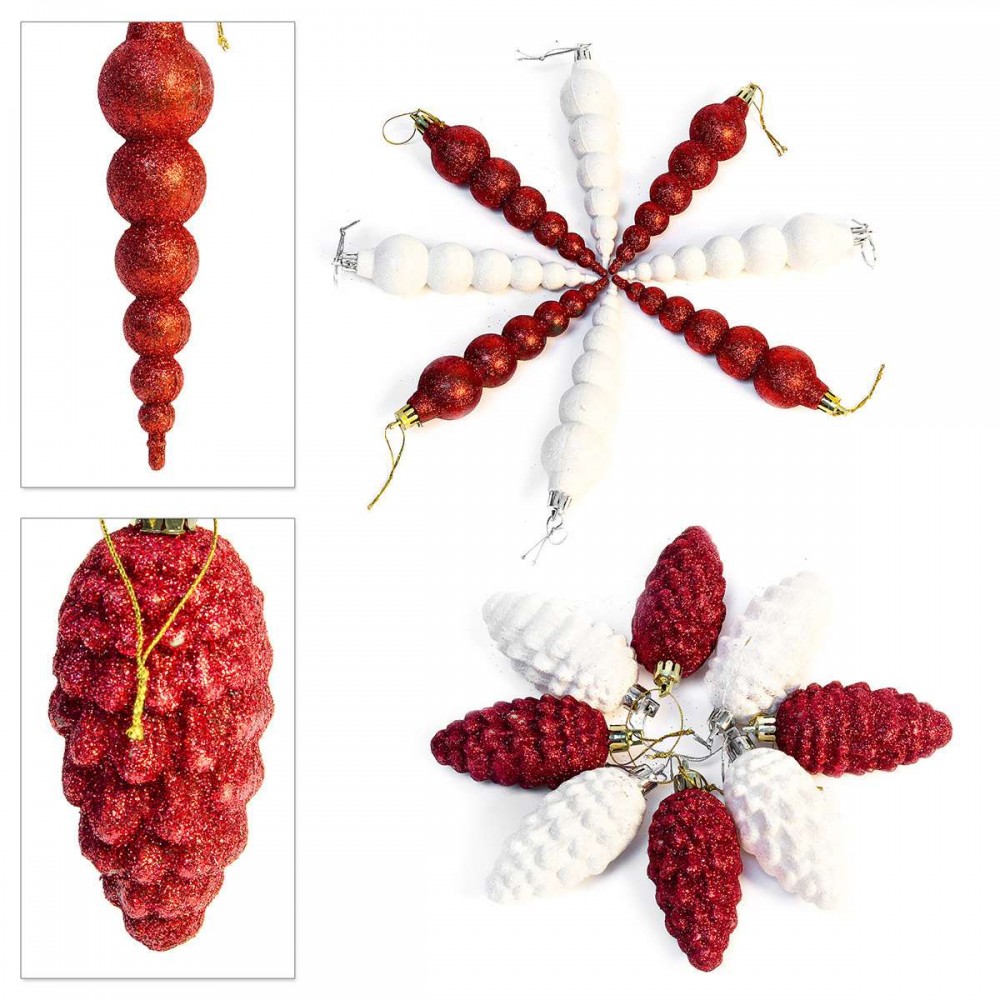 12 μεγάλες μπάλες Χριστουγέννων  8 εκατοστών (κόκκινο, λευκό)
