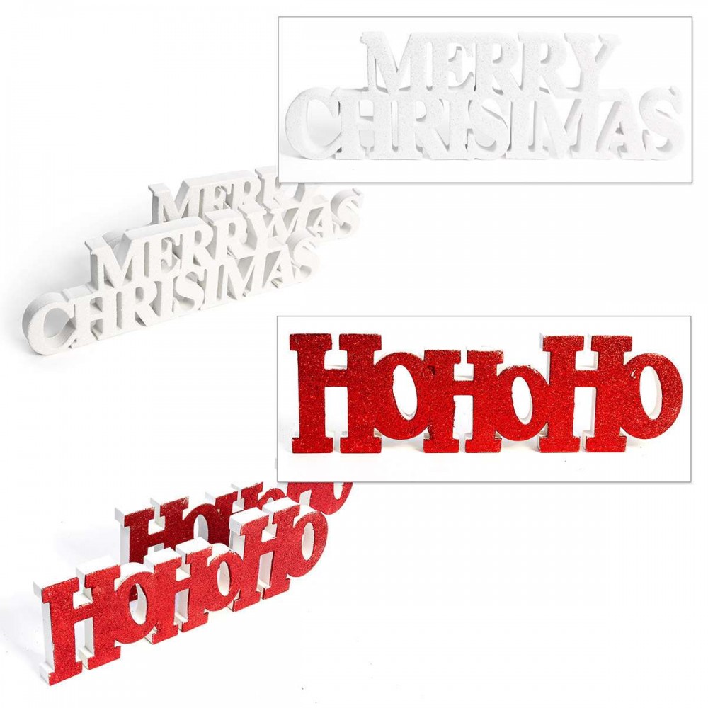 4 x διακοσμητικές χριστουγεννιάτικες επιγραφές τυχαίας επιλογής :"Hohoho" ή "X-MAS" ή "MERRY CHRISTMAS" περίπου 30 cm glittery (κόκκινο ή λευκό)